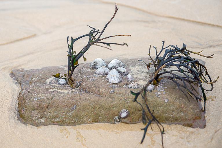 Mais la mer en se retirant offre sur le sable des algues et des galets qui sur un plan resserré permettent d'imaginer et de rêver.